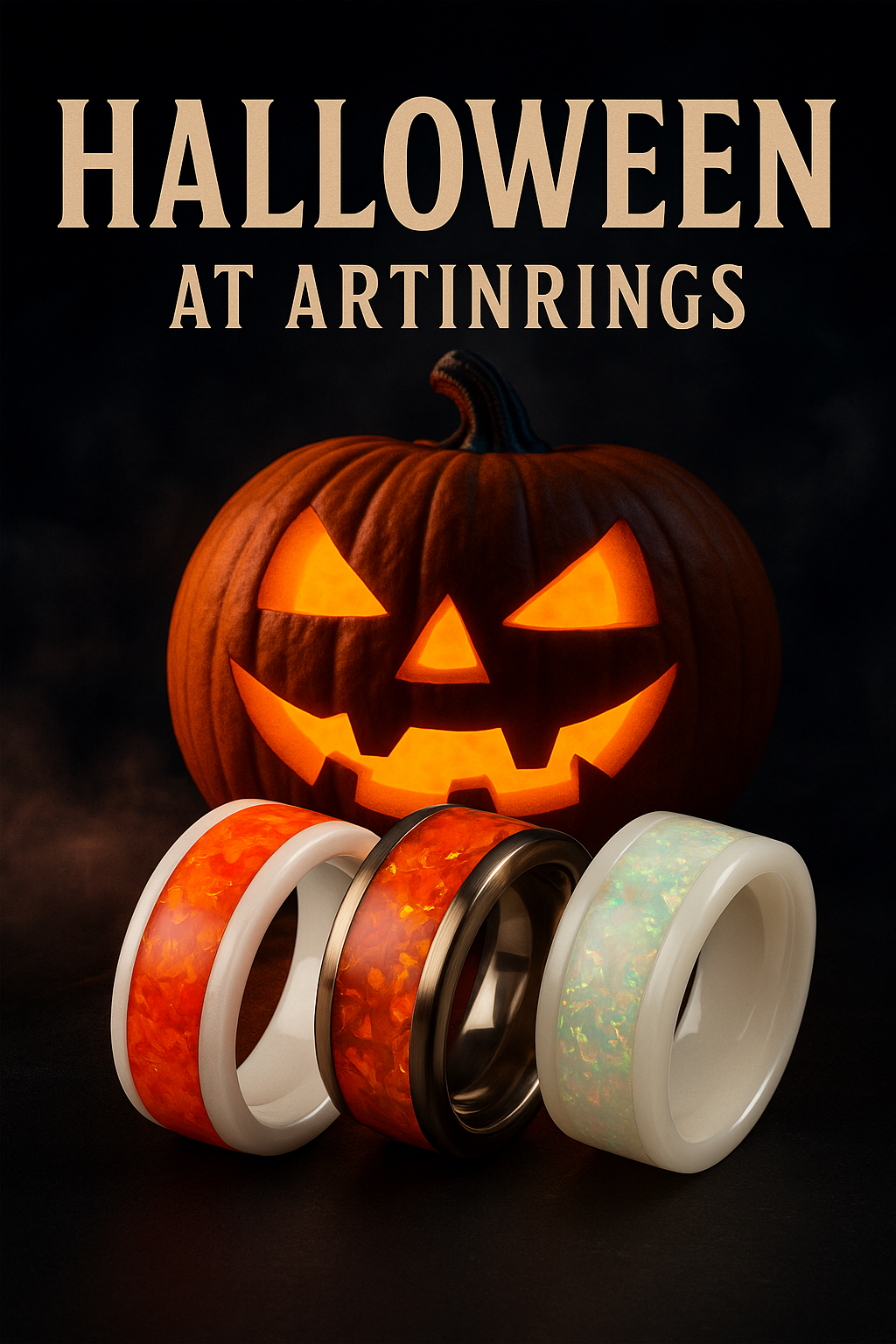 Halloween chez Artinrings. Trois bagues. Feu, ombre et opale.