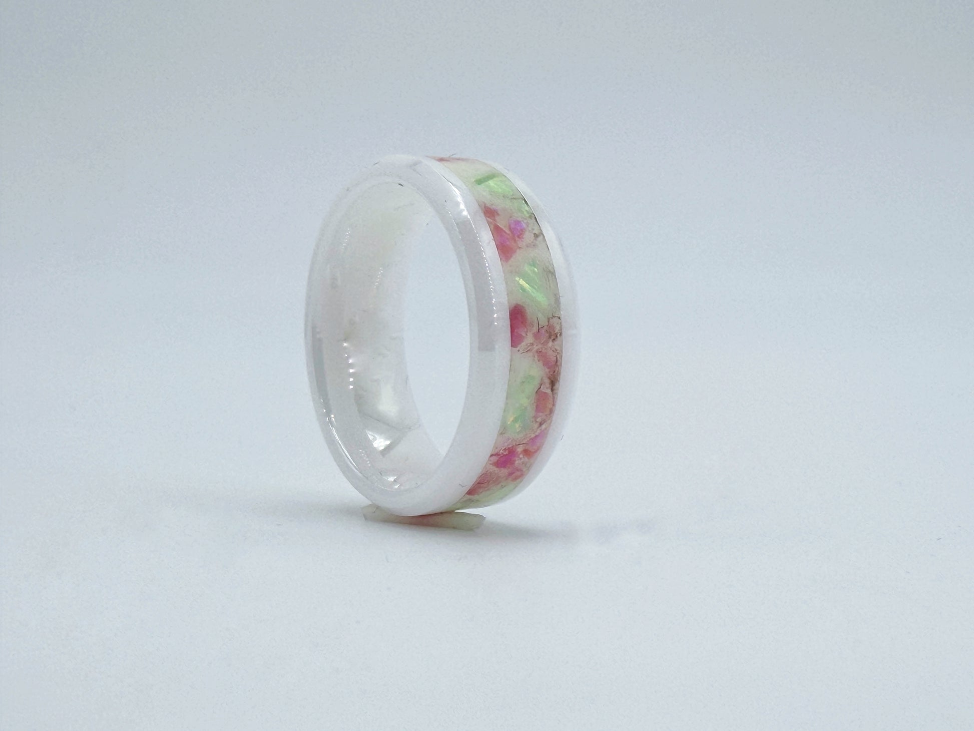 Der Watermelon Ring kombiniert eine helle Basis mit organischen Grün- und Rottönen.